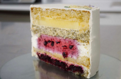 В этом торте ее будет достаточно. Он сочетает в себе 2 вида бисквита (маковый и лимонный), лимонный курд, черносмородиновый конфитюр, ванильный крем чиз, черносмородиновый мусс с кусочками чёрной смородины.